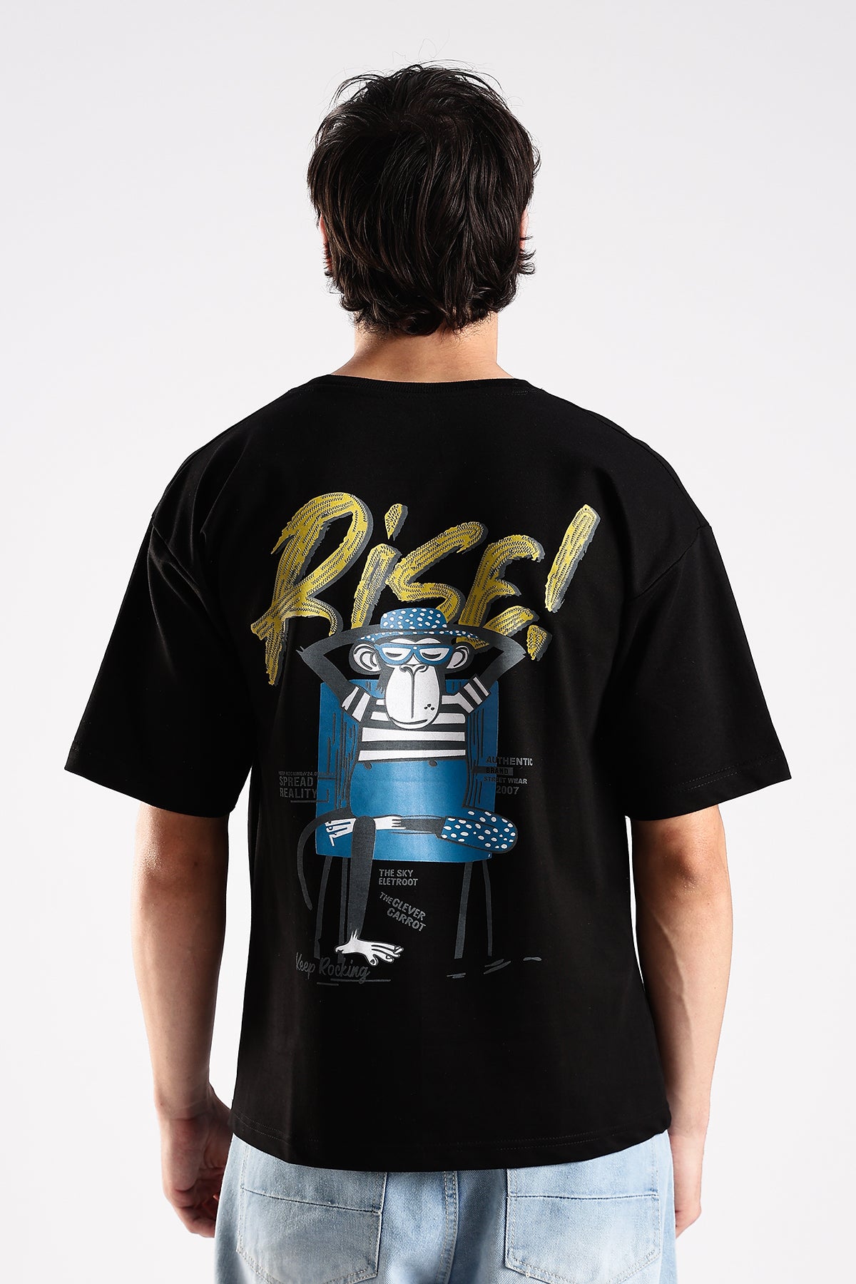 Black Rise HD Graphic Printed Oversized T-shirt