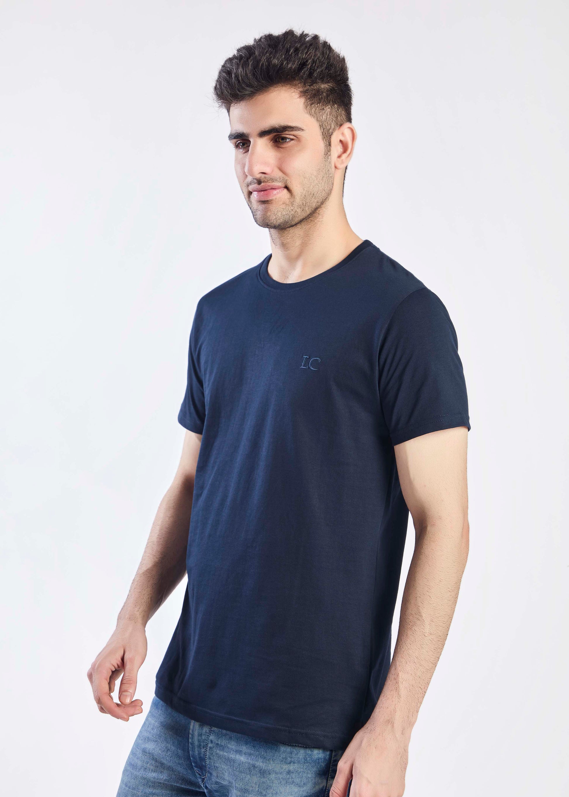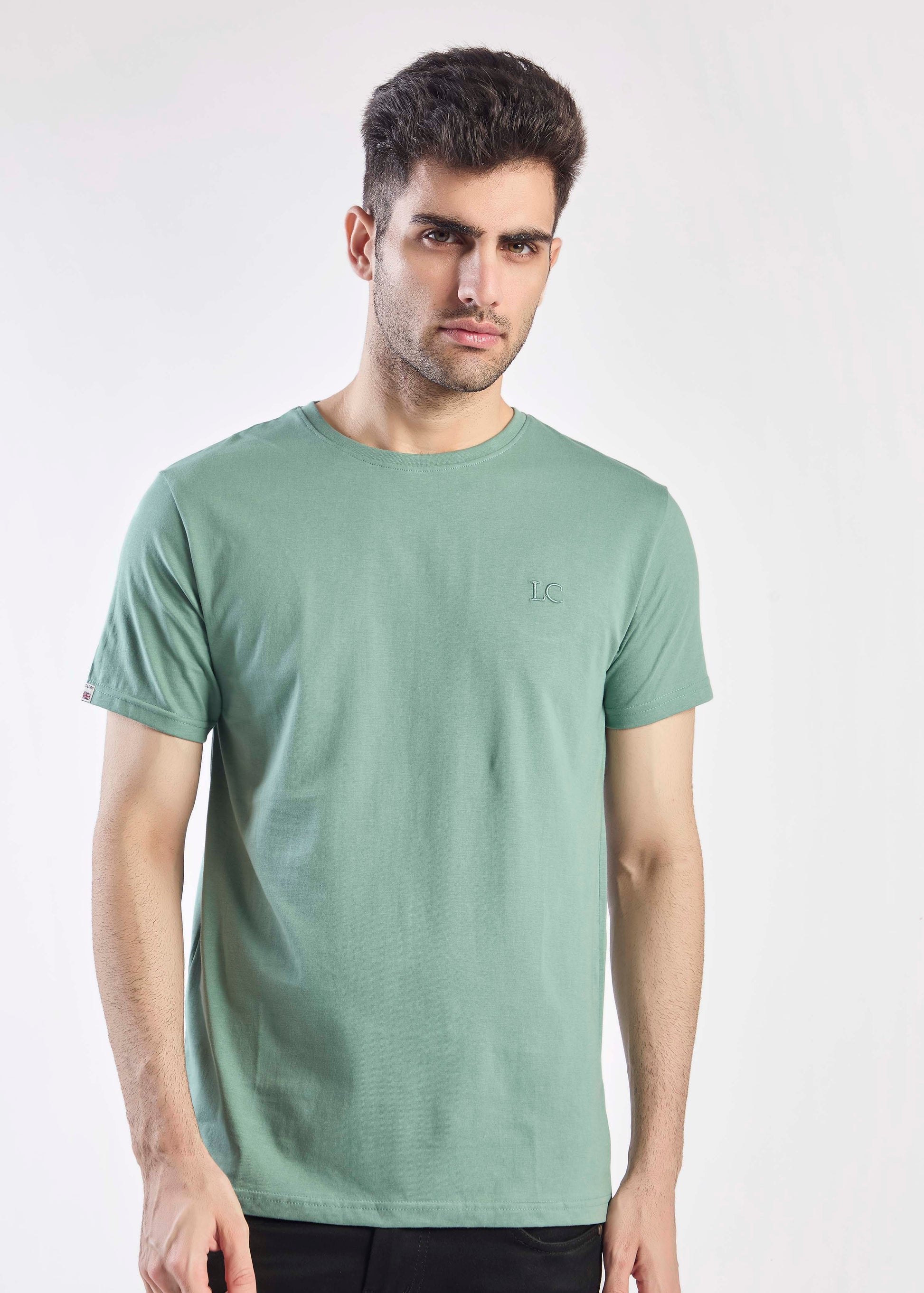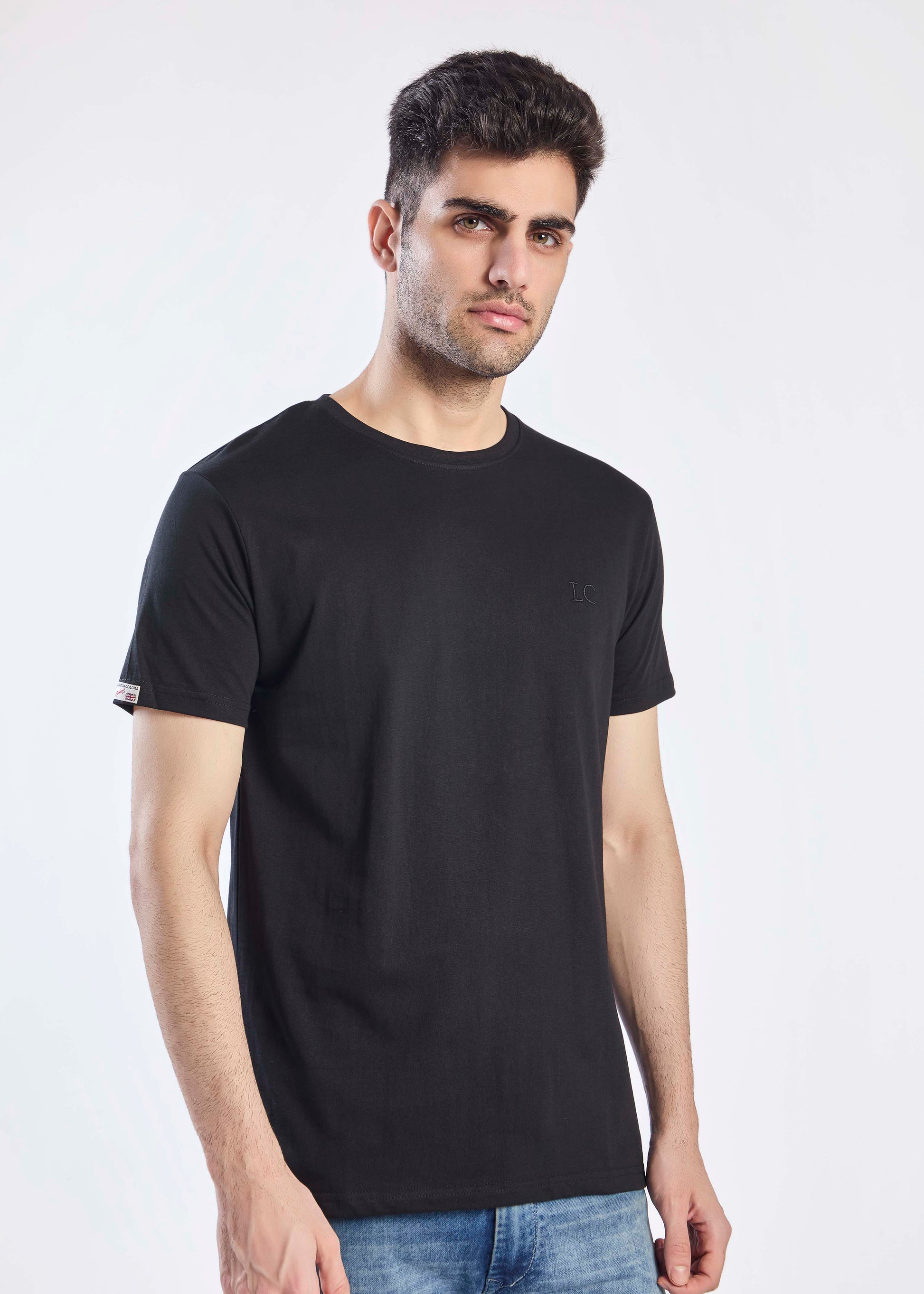 LONDON COLORS Plain Cotton Round Neck T-Shirt with LC Embroidery