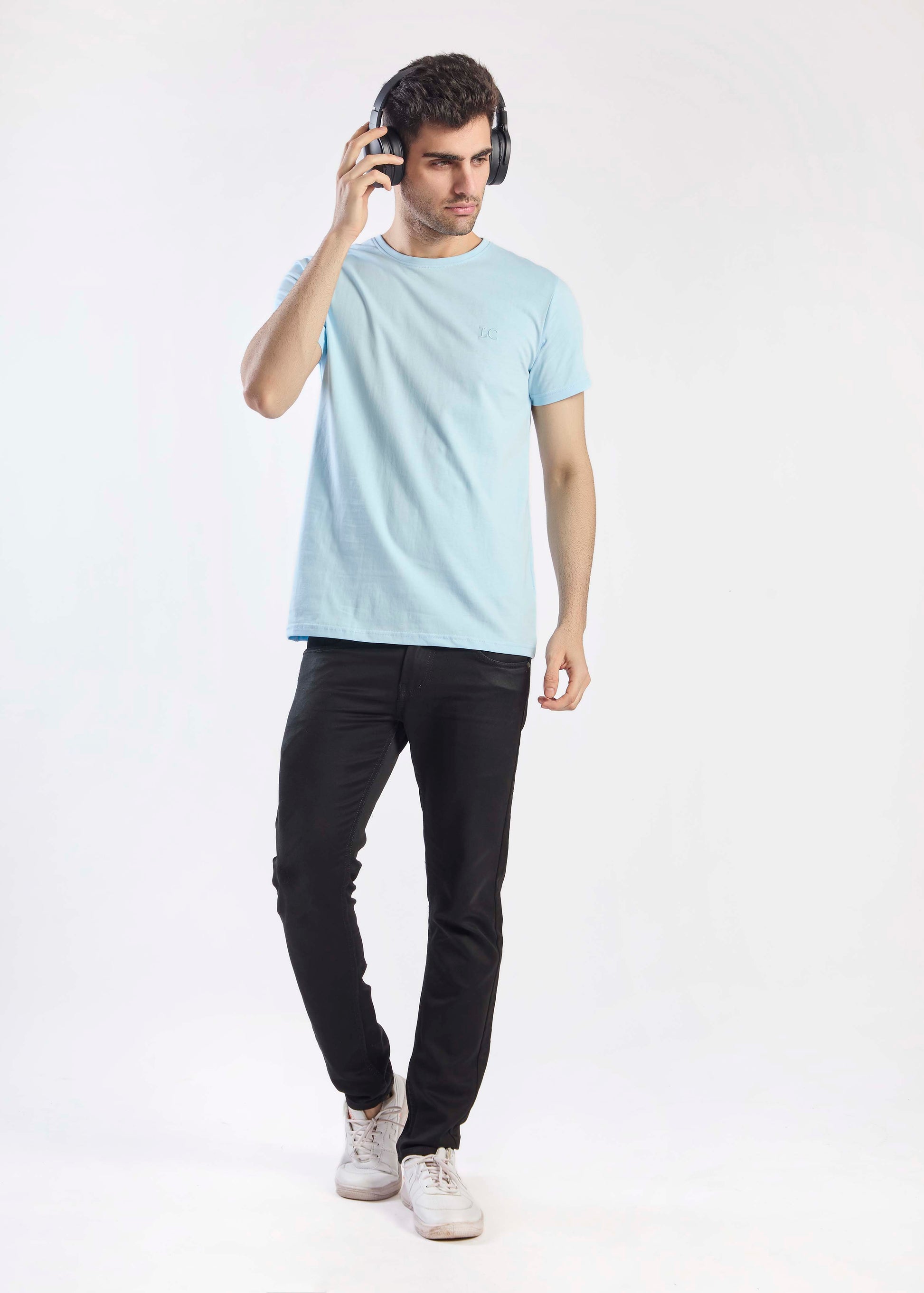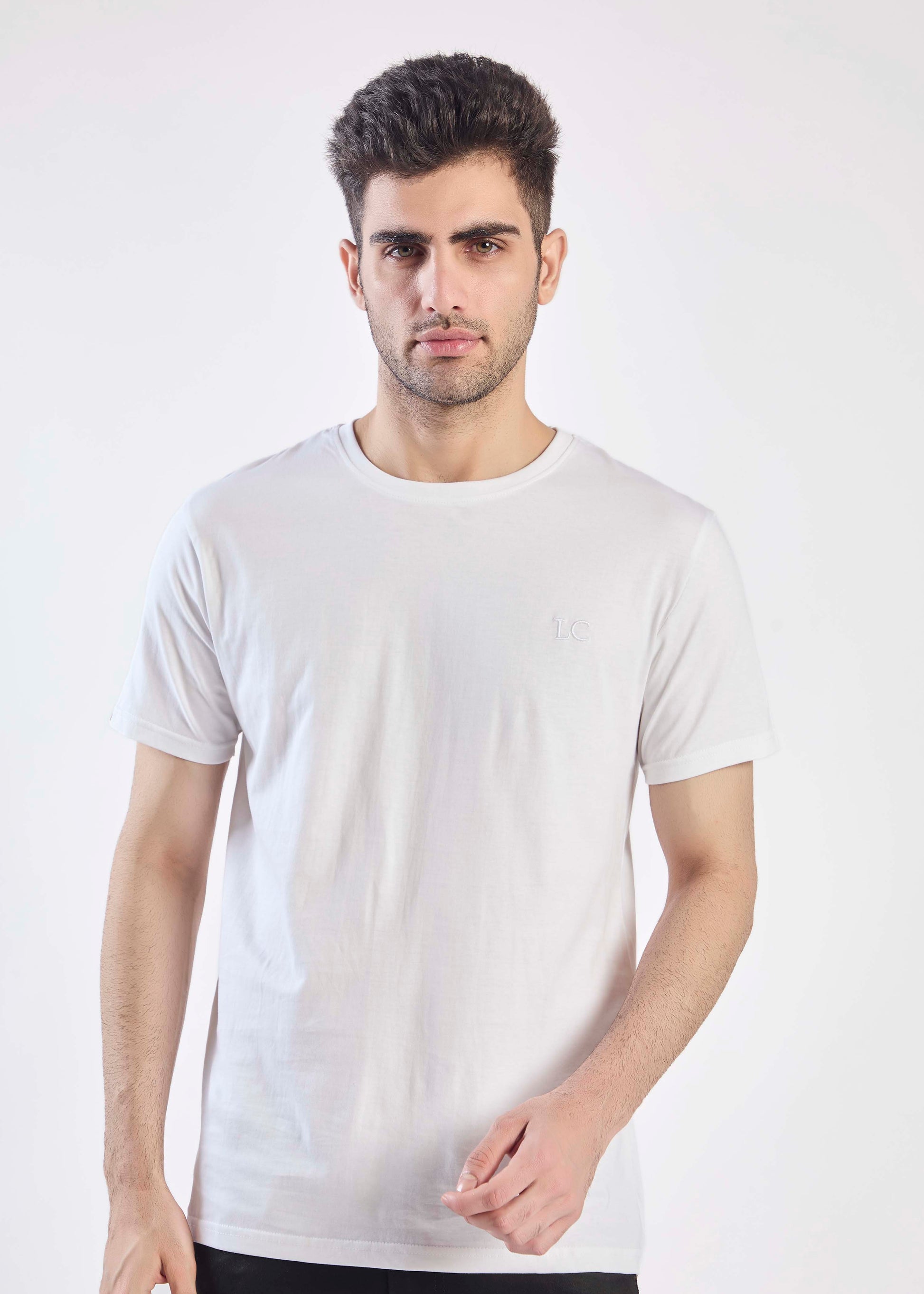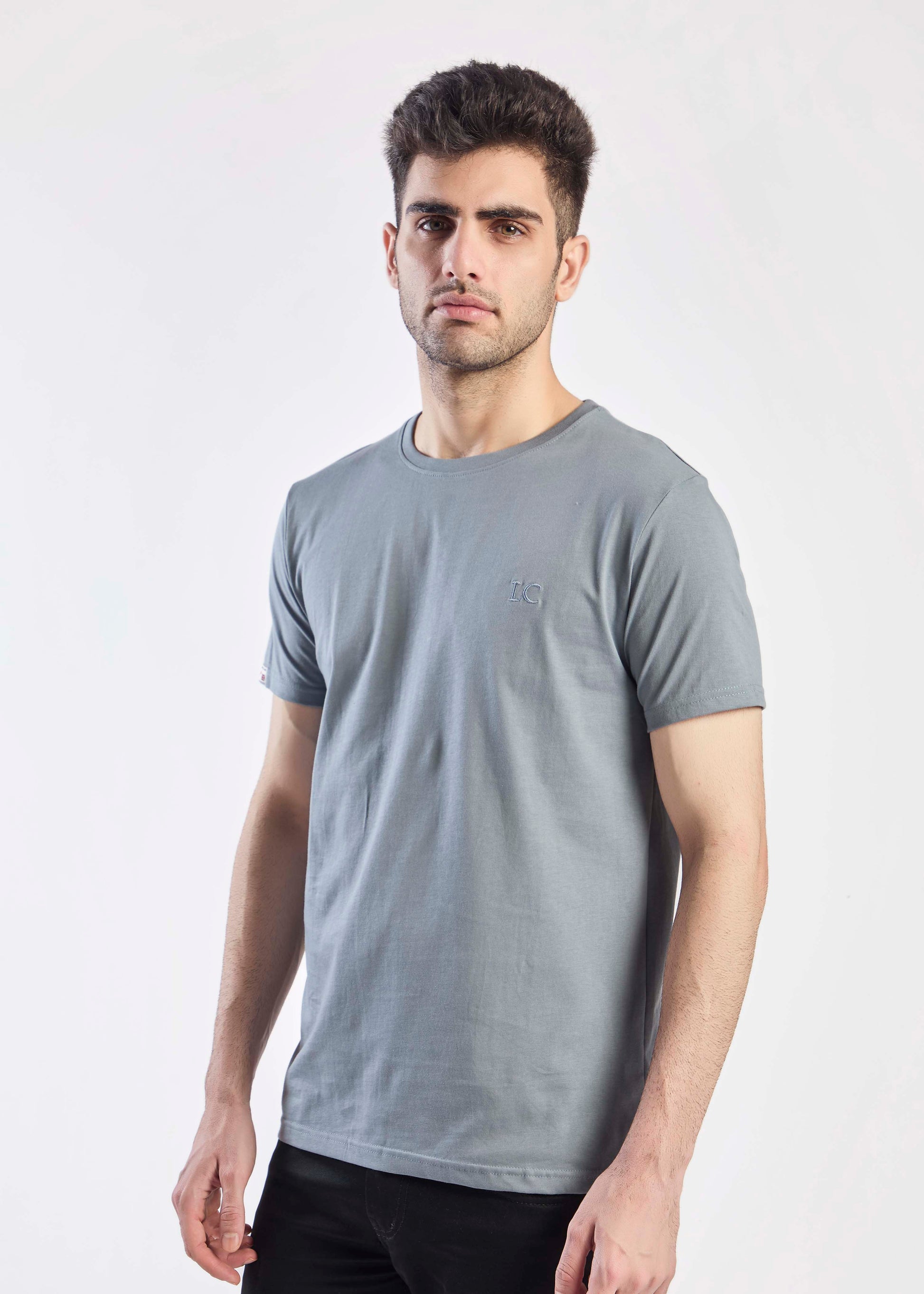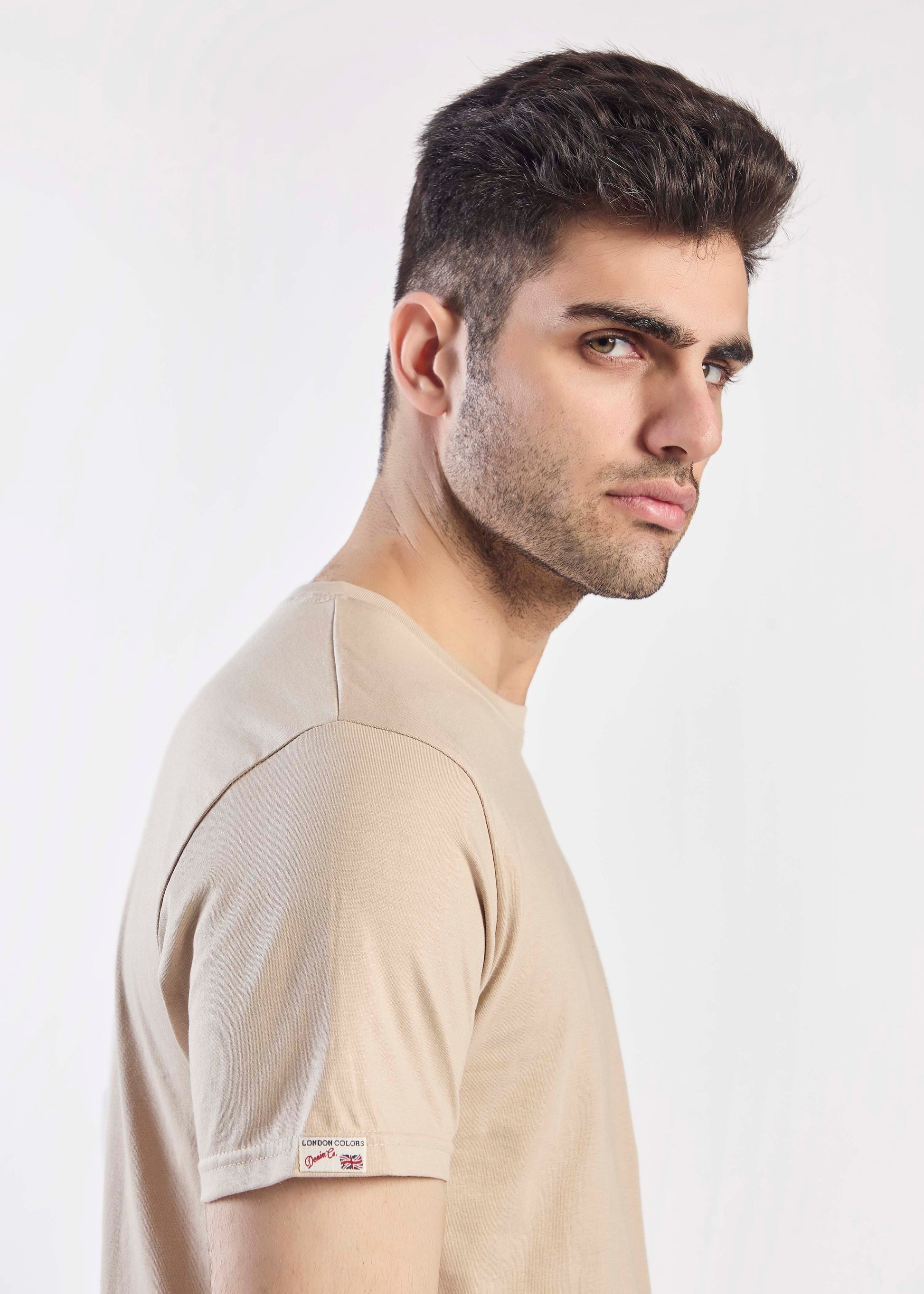 LONDON COLORS Plain Cotton Round Neck T-Shirt with LC Embroidery