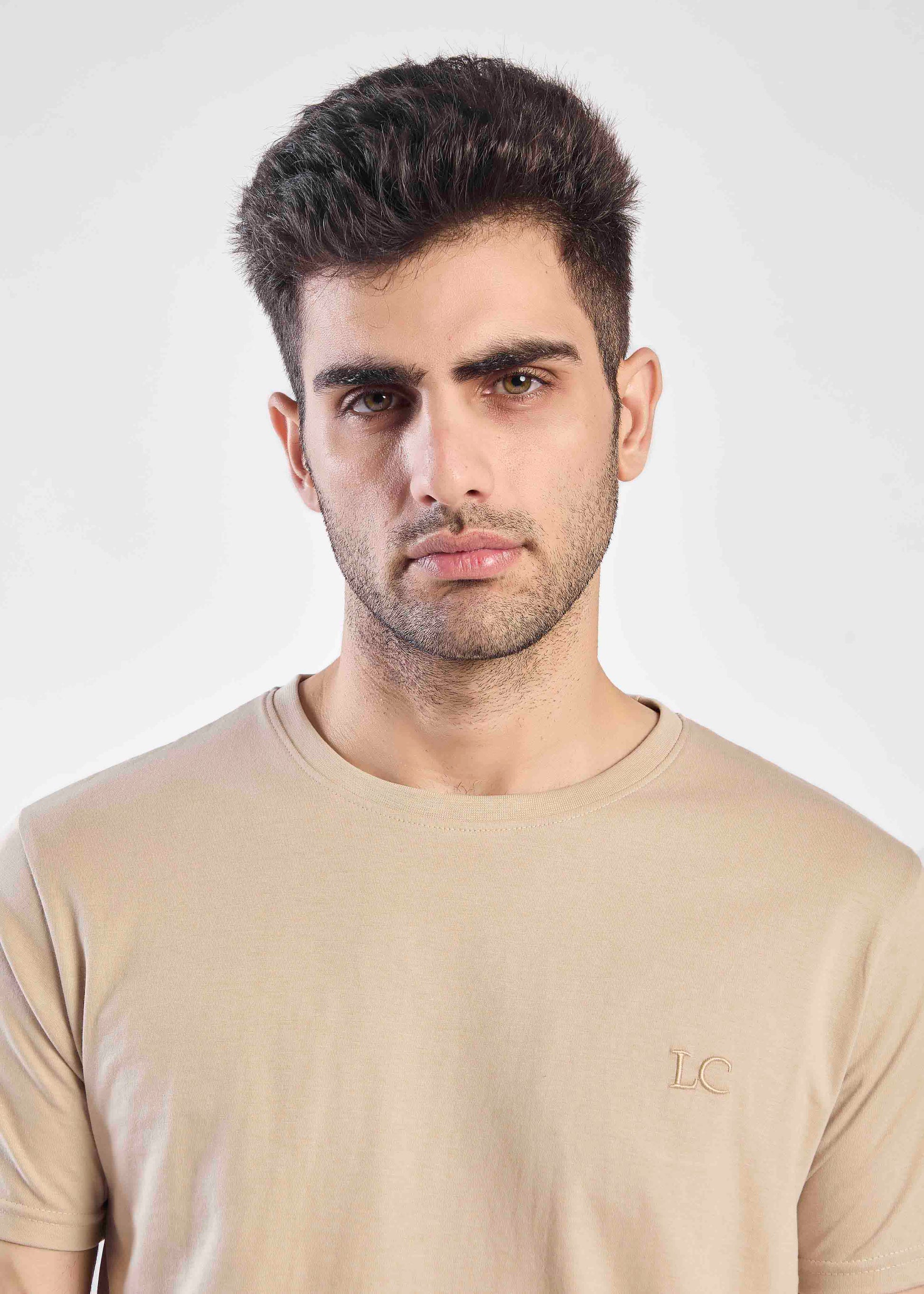 The minimalist design is elevated with a subtle “LC” embroidery on the chest, giving it a refined touch that blends simplicity with sophistication. Perfect for pairing with jeans, joggers, or layering under jackets, this T-shirt is a must-have wardrobe essential.