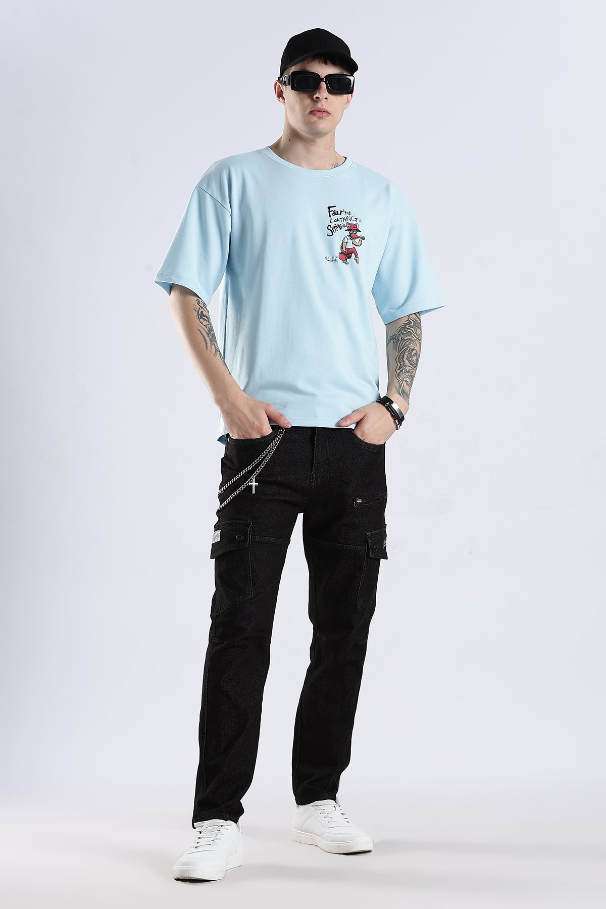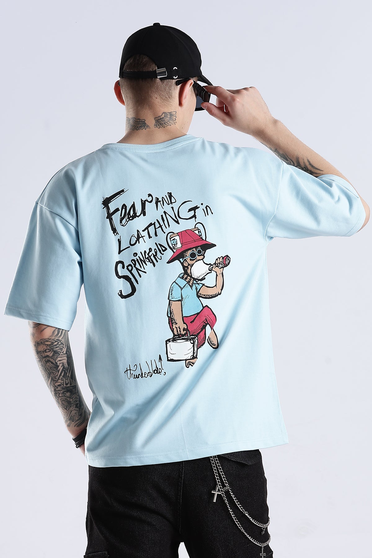 Sky Blue Fear HD Graphic Printed Oversized T-shirt